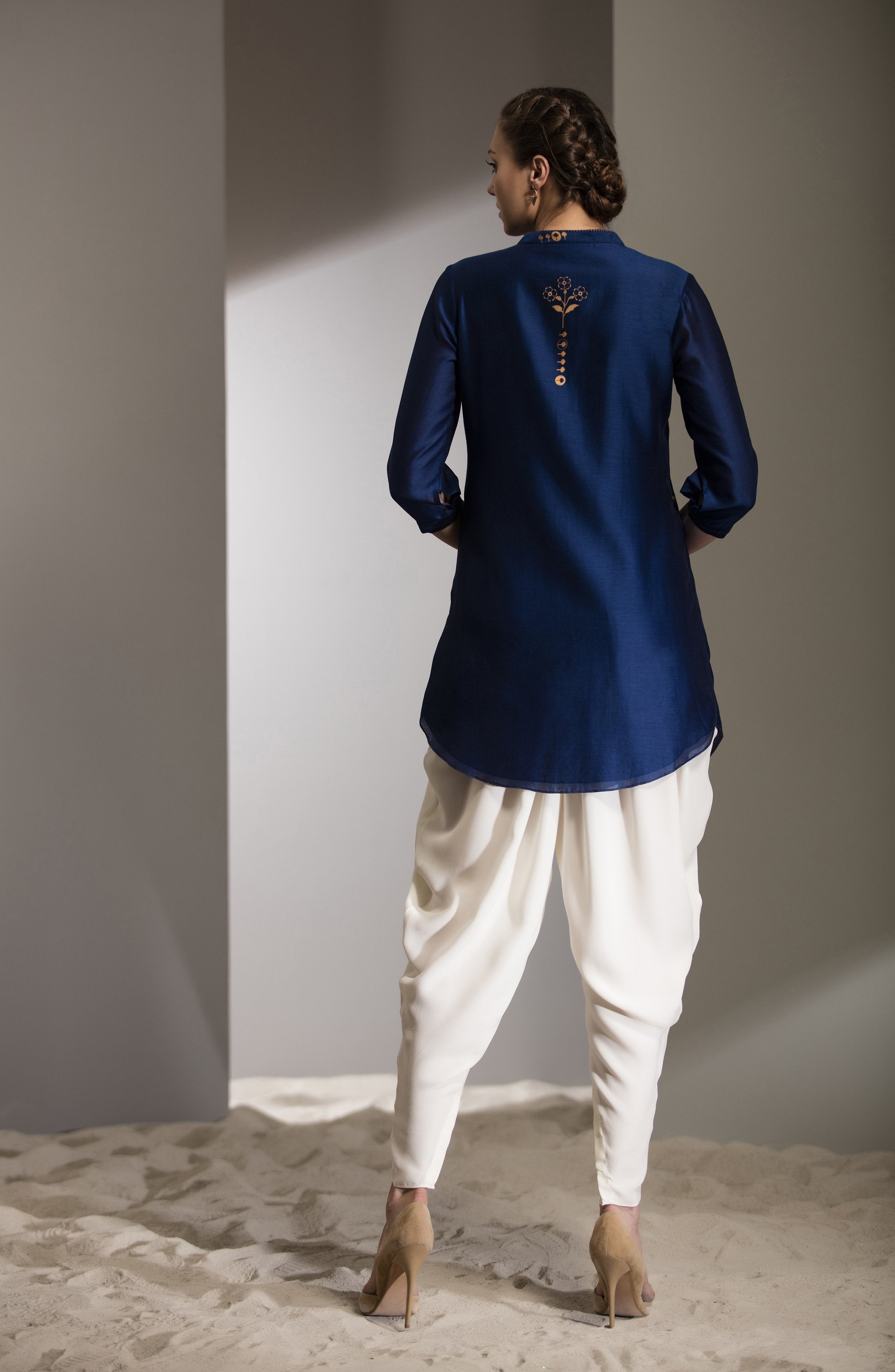 Dark Blue Jaal Embroidered Tunic Set-2751
